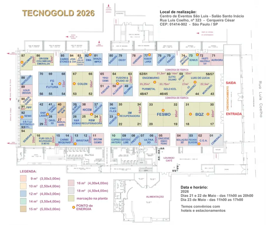 TECNOGOLD – FEIRA DE TECNOLOGIA, GEMAS E DESIGN, no Centro de Eventos São Luís, na cidade de São Paulo, o mais importante evento de tecnologia e insumos para a indústria joalheira na América do Sul, organizado pelo SINDIJOIAS – Sindicato da Indústria de Joalheria, Bijuteria e Lapidação de Gemas do Estado de São Paulo.